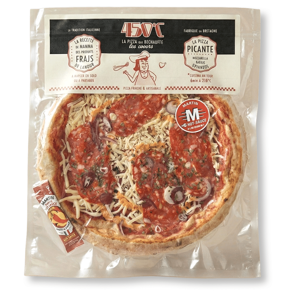Les pizzas 450°C sont le fruit d’un savoir-faire artisanal né à Quimper et d’une exigence constante sur la qualité. Chaque recette repose sur une pâte travaillée avec soin, une garniture généreuse et des ingrédients rigoureusement sélectionnés. Inspirées de la pizzeria napolitaine, nos pizzas allient goût authentique, régularité et praticité, pour offrir aux consommateurs une expérience gourmande fidèle au fait-maison, aussi bien en grande distribution que chez les revendeurs spécialisés.